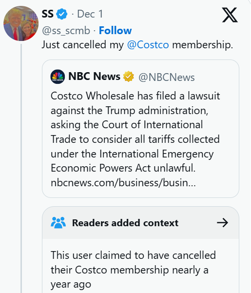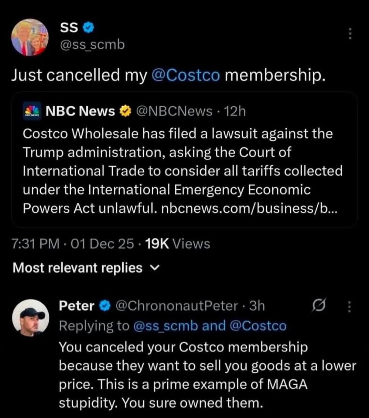 Then came the stampede of MAGA disciples rushing to cancel their Costco memberships. Or in this guy’s case, canceling his membership again after already canceling it last year.