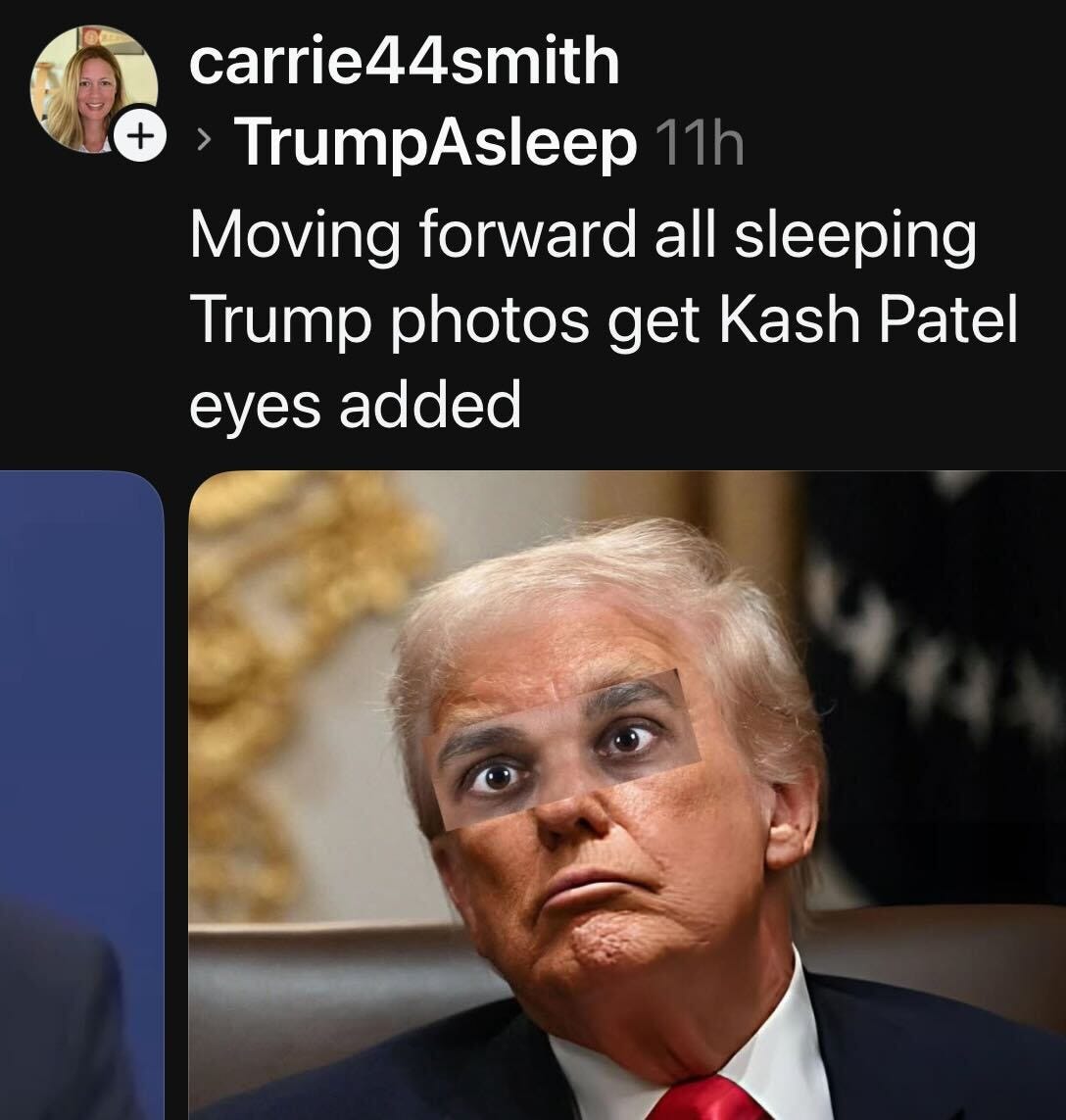 Costco has a very low turnover of employees--they are obviously doing something right. LOVE the Kash Patel eyes, but why not just paint them on his eyelids? /with permanent ink, of course.