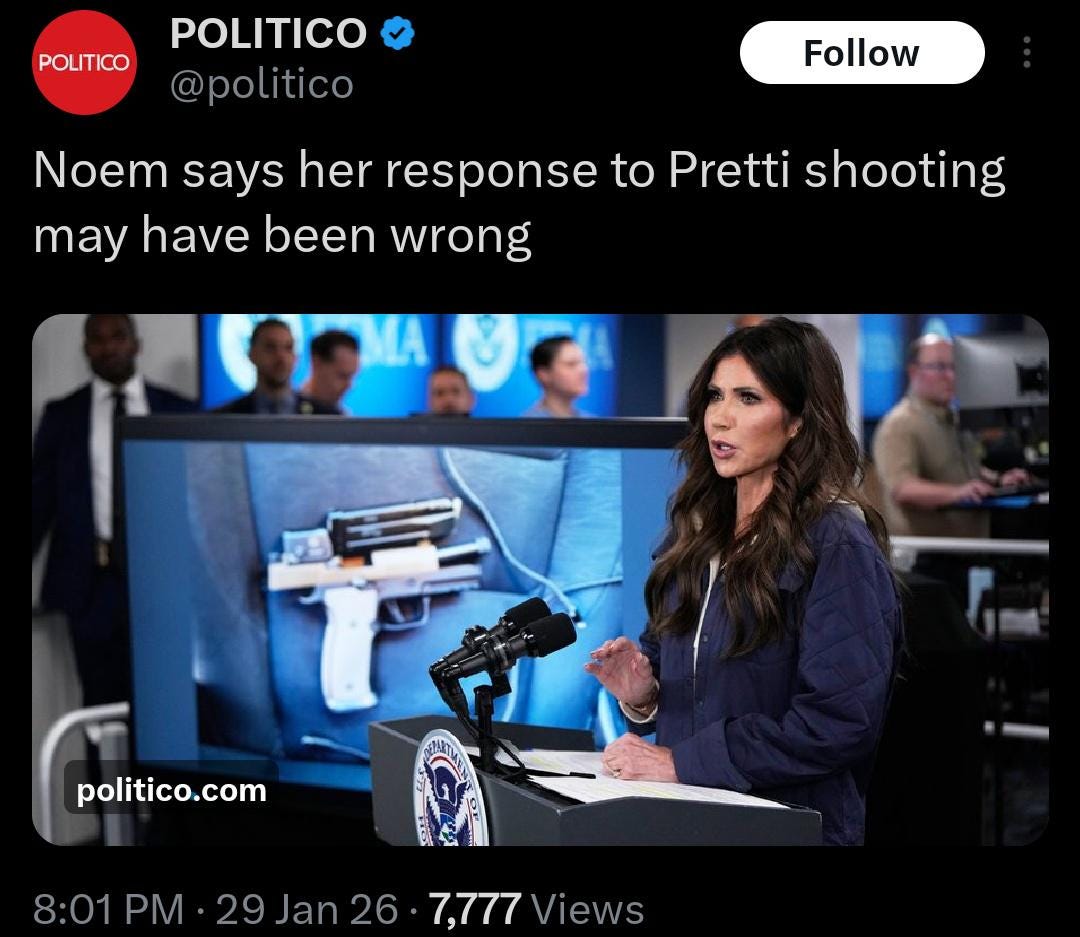 “May have been wrong,” says Kristi Noem, after seeing the horrific poll numbers for her masked murder squad filled with J6 proud boy pedophiles.