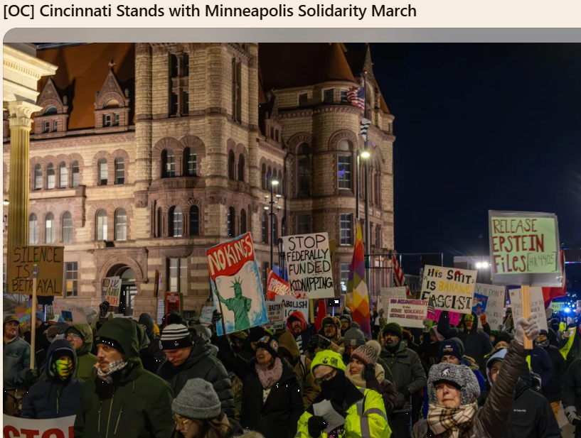 Minnesota is strong. ❤️ God bless them for marching out against Orange Ice thuggery and our Demented president and his evil minions.