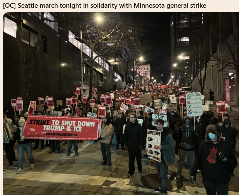 These wonderful people weren’t marching out in subzero temperatures for fun. They were grieving the murder of Renée Good by ICE agent Jonathan Ross. They were standing against raids, fear, and the US state sponsored terrorism of its own people. They braved the cold because ICE is a criminal organization run by white supremacists.
