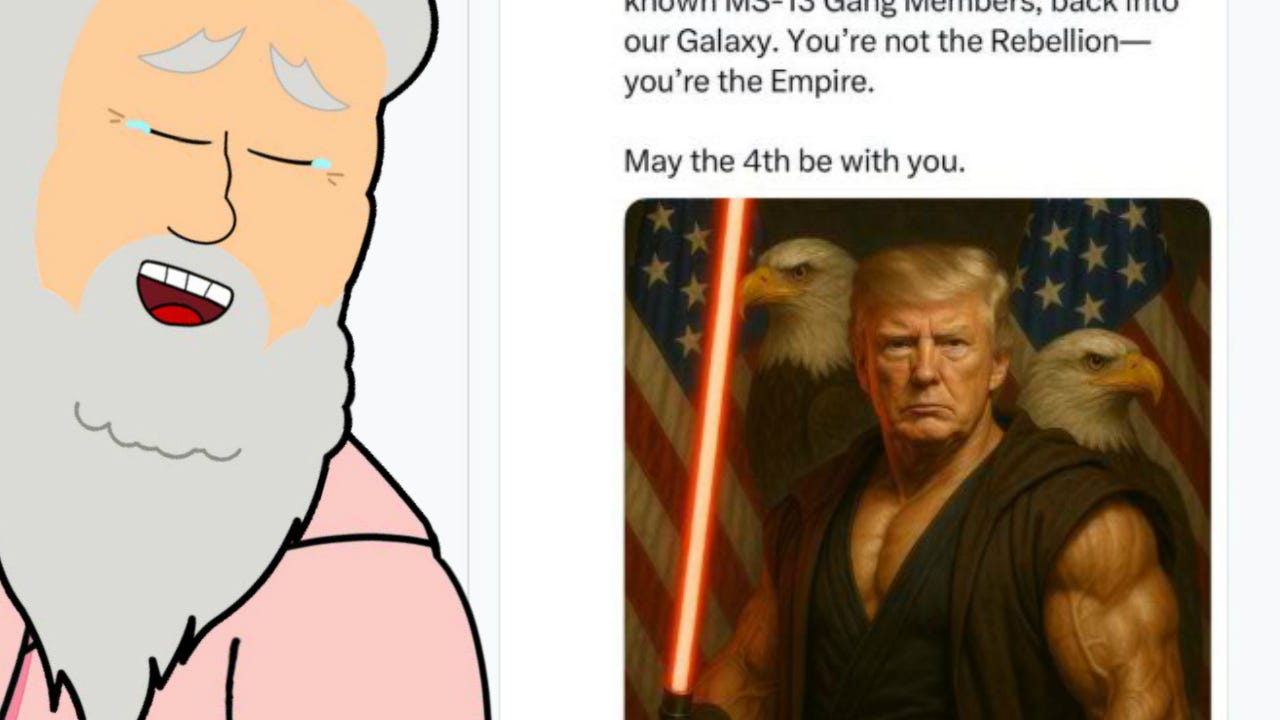 The Trump White House account just posted a jacked-up, red-lightsaber-wielding portrait of Donold for May the 4th. Not even kidding.