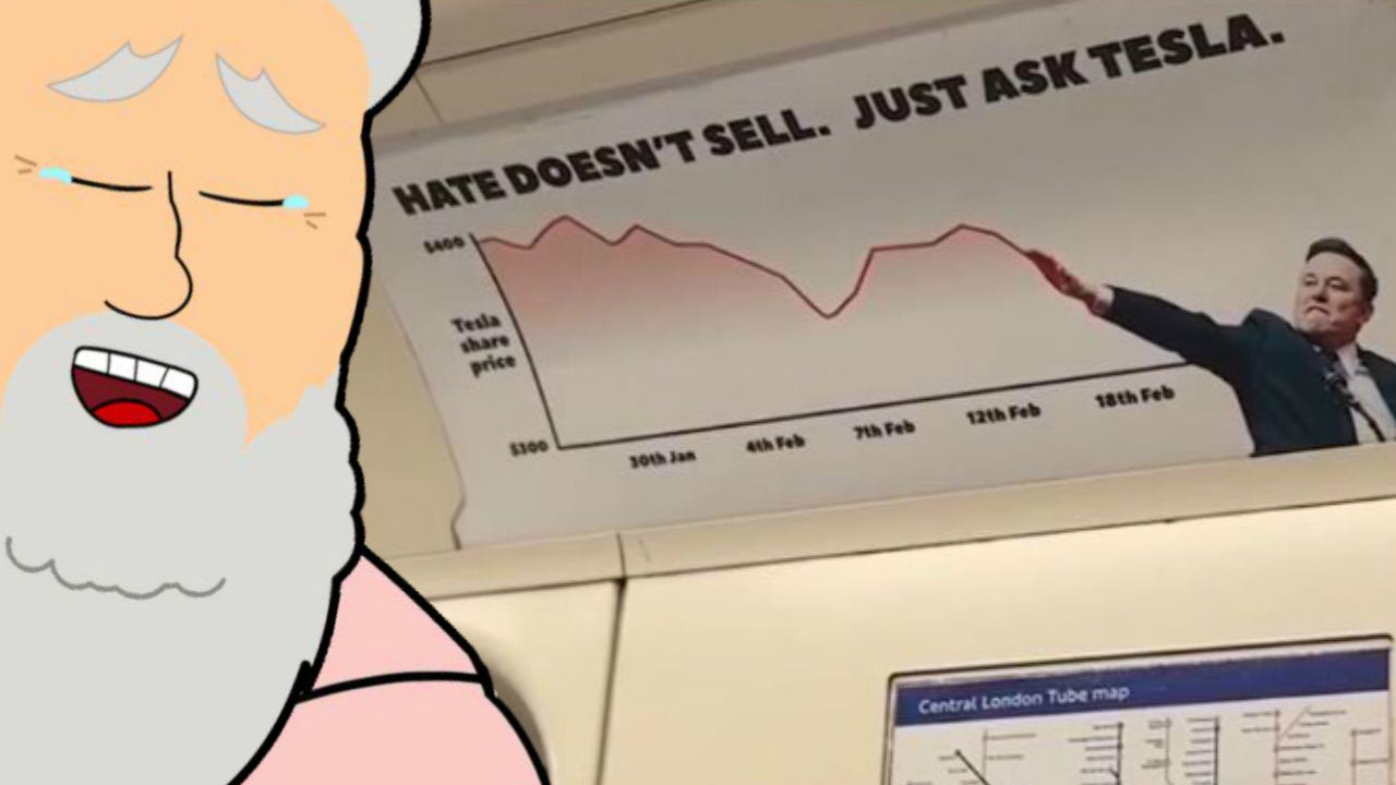 Tesla’s stock hath crashed over 40% since December, wiping out $111 billion of Elon’s fortune. Turns out, investors don’t love it when a CEO ditches his own company to spend his days boosting Nazis and banning journalists.