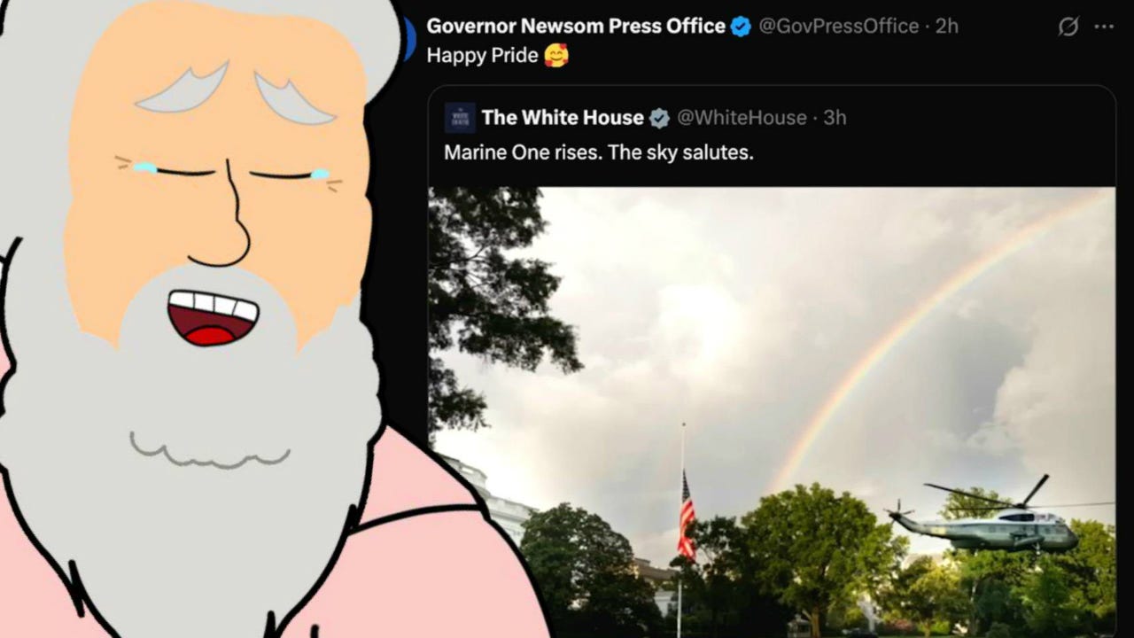 First I sent a thunderstorm to ruin his stupid birthday parade. Now behold! I painted the skies with a rainbow to troll his helicopter for Pride Month!