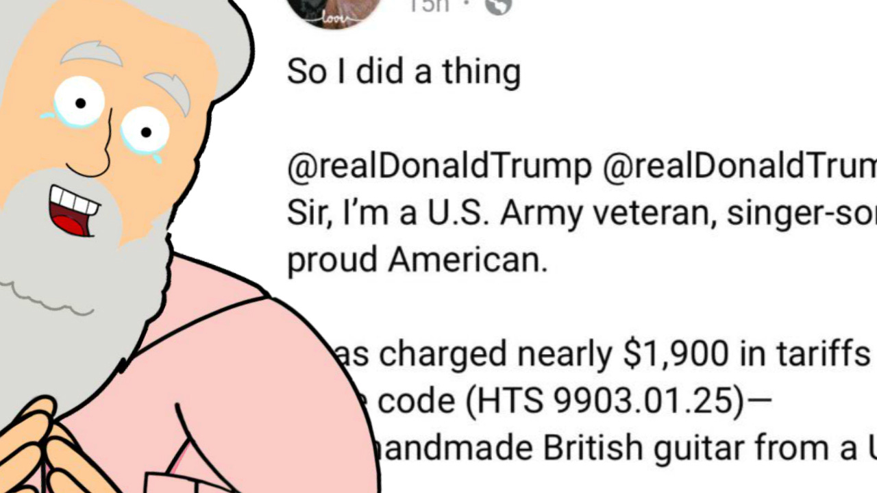 Lo, this man only wanted to play a guitar. A beautiful handmade one from the United Kingdom. But alas, he chose poorly. Not the guitar. The president.