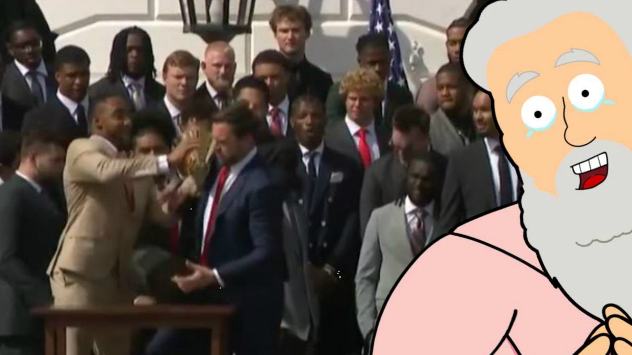 JD Vance, eager to steal some glory at a White House event for Ohio State’s national championship, lifted the College Football Playoff trophy for a photo op... and immediately dropped and BROKE it.