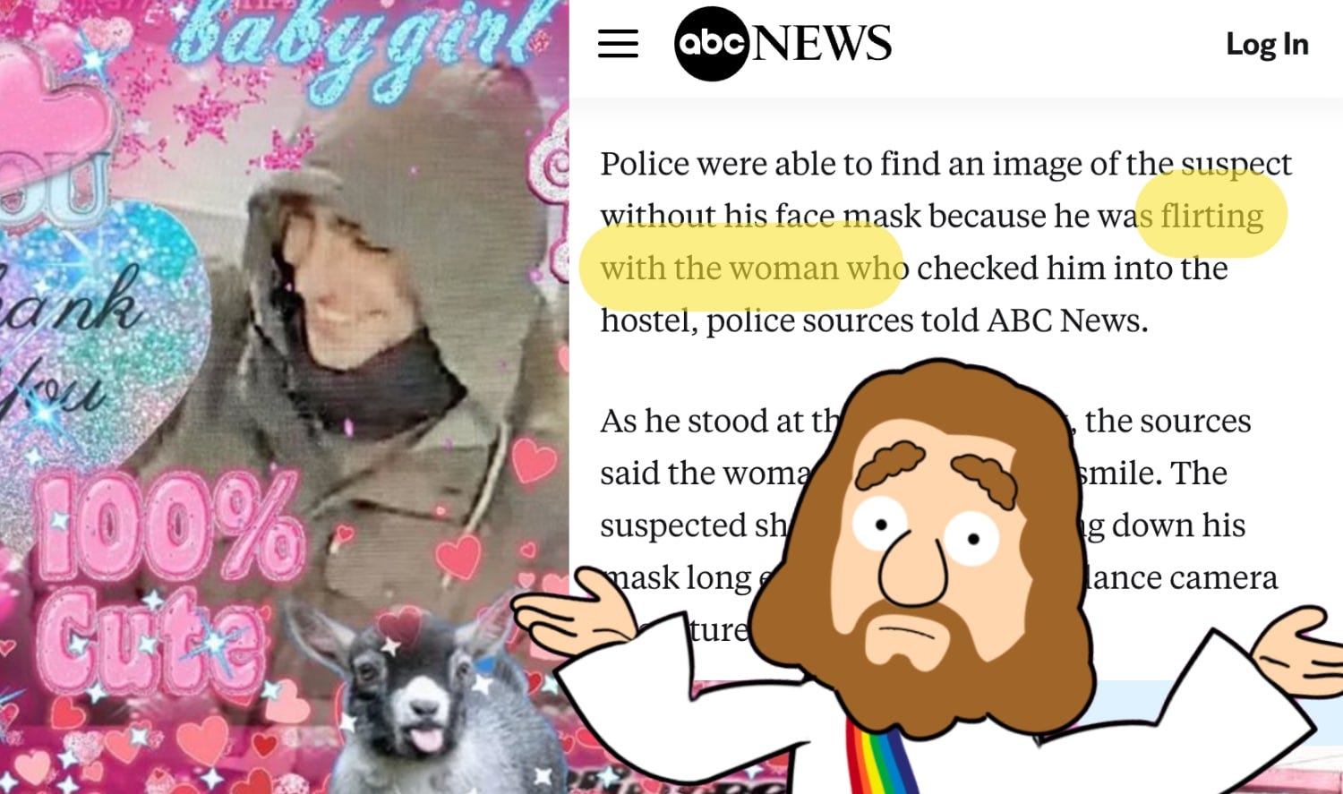 When I walked the Earth, I healed the sick, raised the dead, and never once sent anyone a bill. Healthcare was free, accessible, and abundant—yea, it was the ultimate public option. But here I am, scrolling through your internet, and what do I see? Memes thirsting over a murder suspect. Truly, I am not impressed.