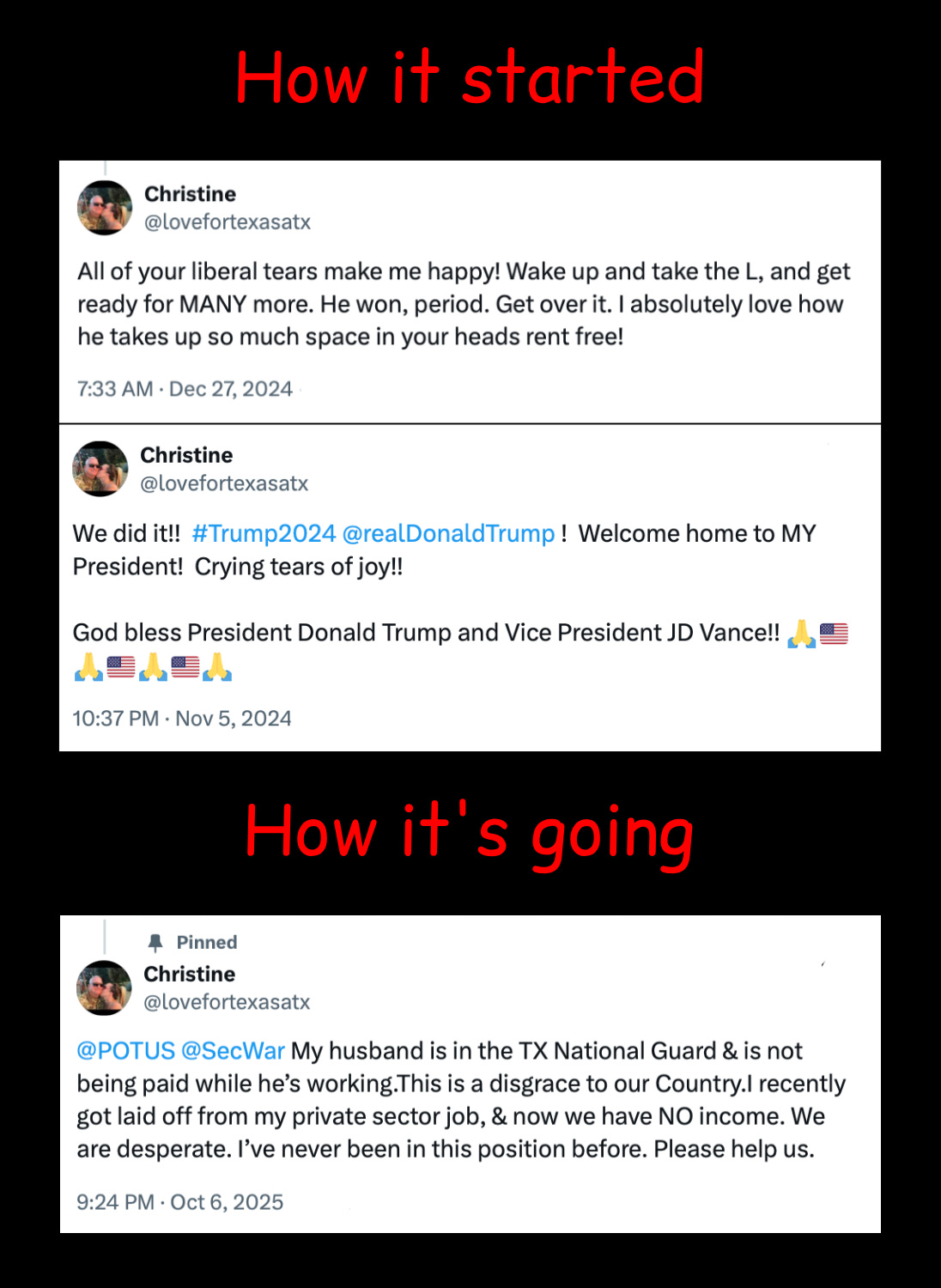 MAGA, I told you this man would destroy everything you love. You laughed and mocked the hungry. Now you are the hungry.