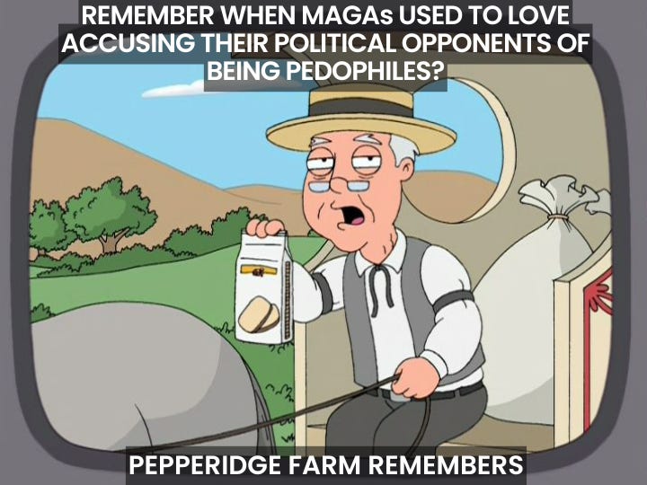 How dare he talk about people who attended his parties, as if we all don’t have the image of Trump happily pointing out girls to Epstein at a party burned into our minds forever.