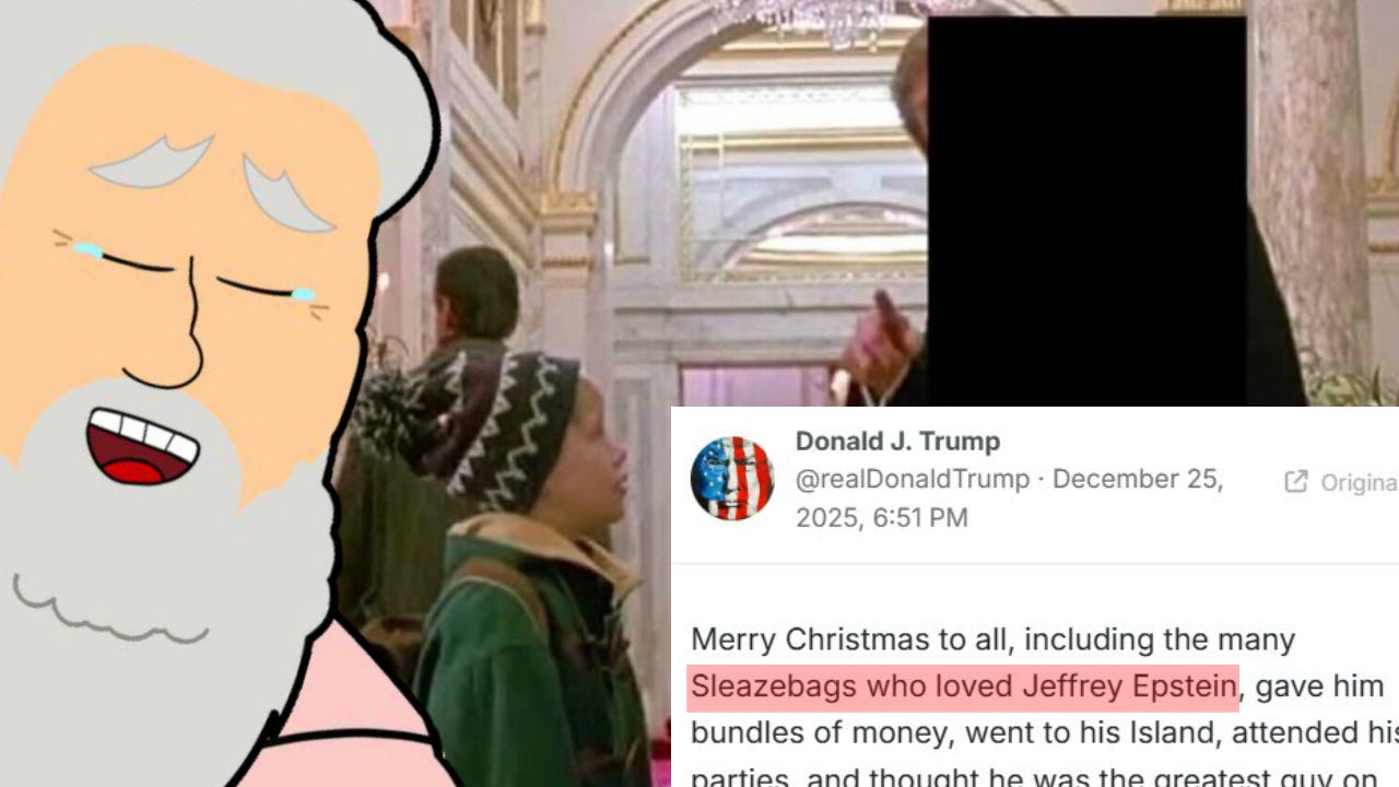 Then on Christmas night, Donold finished up with a Christmas message about “Sleazebags who loved Jeffrey Epstein, gave him bundles of money, went to his Island, attended his parties, thought he was the greatest guy on earth,” then “dropped him like a dog” when things got “too HOT” and now “blame, of course, President Donald.”