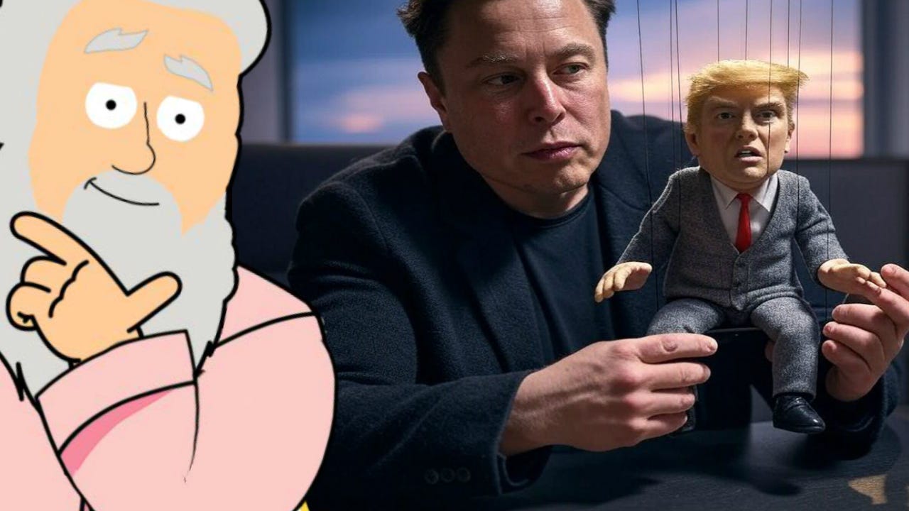 Elon Musk bought himself a US presidency and all it cost him was $277 million. The investment was well worth it, he now controls pathetic, incontinent Donold Trump like a marionette puppet.