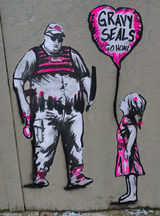 These are masked federal agents with the power to abduct you, cage you, and destroy your family in an instant, slipping on ice like a Looney Tunes cartoon because they forgot winter exists in Minnesota.