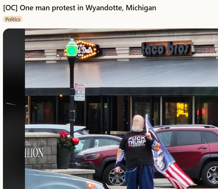 I think I love the one man brave enough to protest alone in Wyandotte, Michigan!