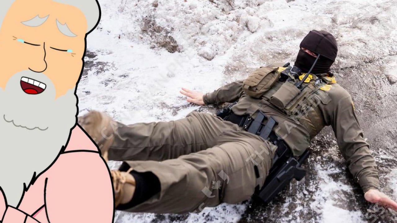 In Minnesota, ICE agents were filmed running, slipping, flailing, and falling on ice. Three separate incidents so far. So I edited them together into a divine compilation, set to hilarious music.