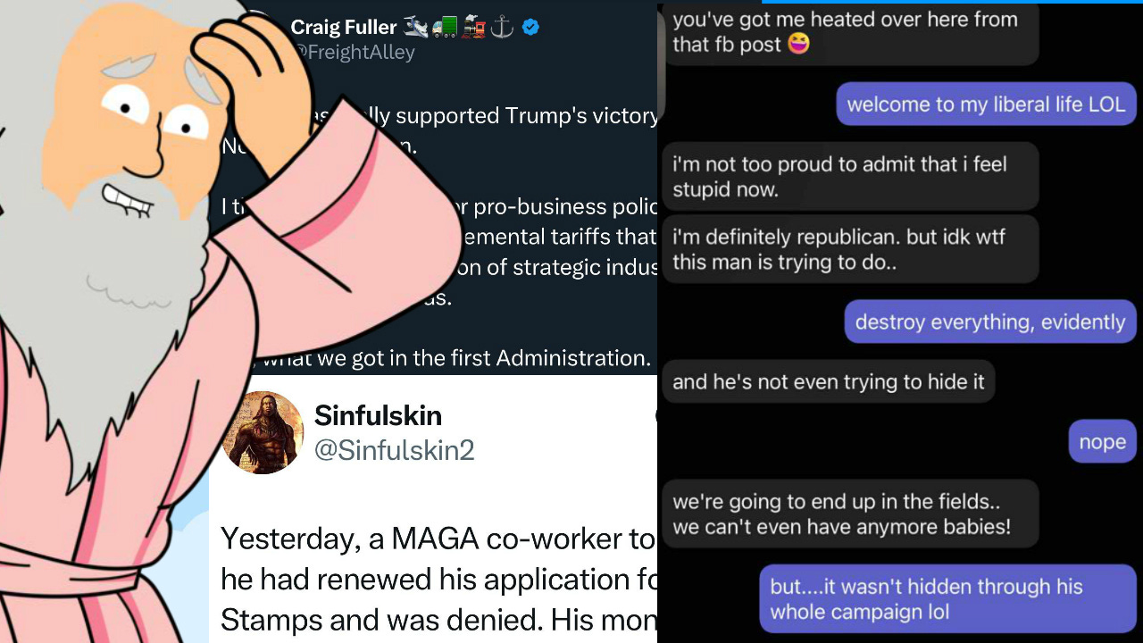 You reap what you vote for. And in this case, it’s tariffs, food stamp cuts, and the creeping realization that maybe… just maybe… the con man conned you. Let’s behold the cornucopia of MAGA ragrets.