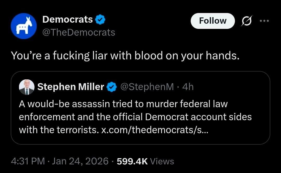 ICE is still claiming that VA Nurse Alex Pretti somehow posed a threat. They held up a photo of his holstered gun like it was a bloody knife. Stephen Miller called him a terrorist. Kristi Noem went on TV and lied her face off.