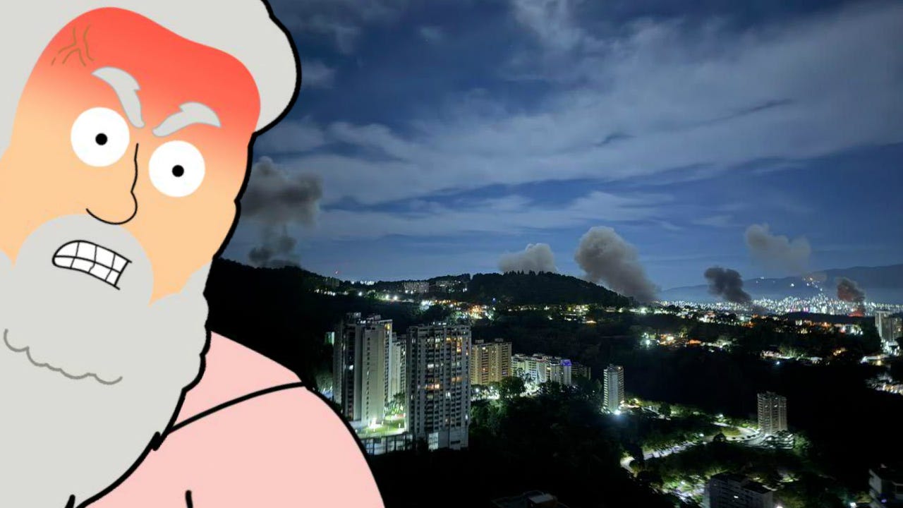 Lo, while you were sleeping, President Pedophile bombed Caracas, Venezuela. He’s now illegally started a war without congressional approval. He’s now officially killing citizens of foreign countries as they sleep in their beds to distract from his sex trafficking role in the Epstein files.