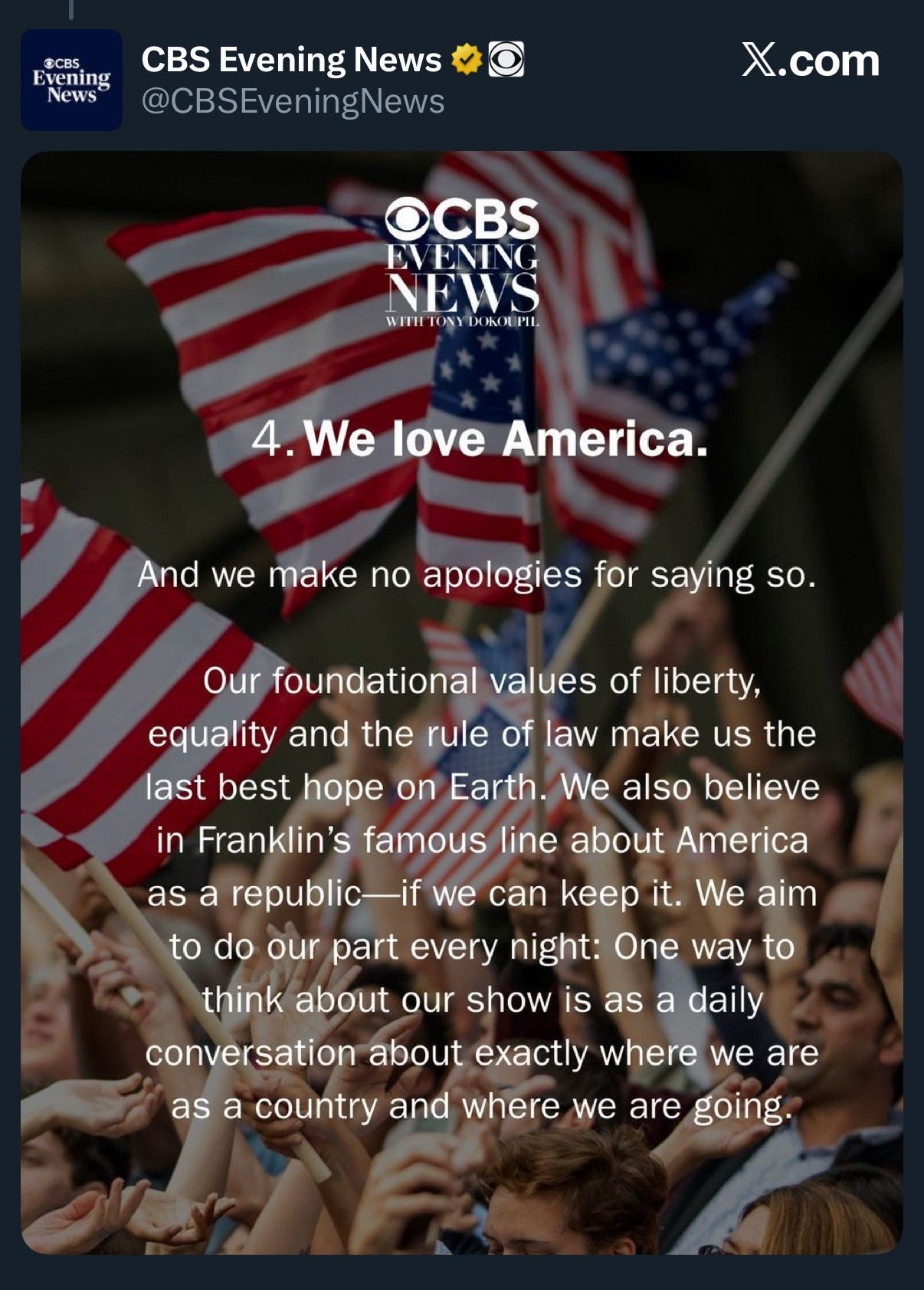 They didn’t just publish a flag-waving manifesto about how much they “love America.” They just spiked yet another episode of 60 Minutes at the direct behest of the White House.