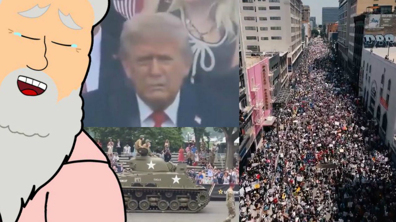 As promised, I brought the rain. You brought the crowds. His followers brought nothing. Together, we humiliated the Mad King Donold on his 79th birthday.