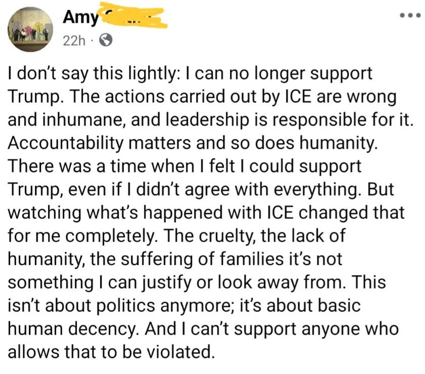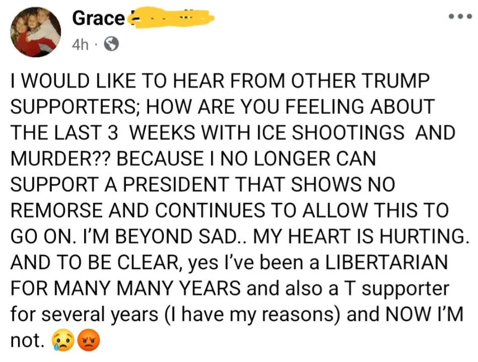 Lo, after ICE brutally executed ICU nurse Alex Pretti in Minneapolis, a Trump voter asked other Trump voters how they’re feeling about all this.