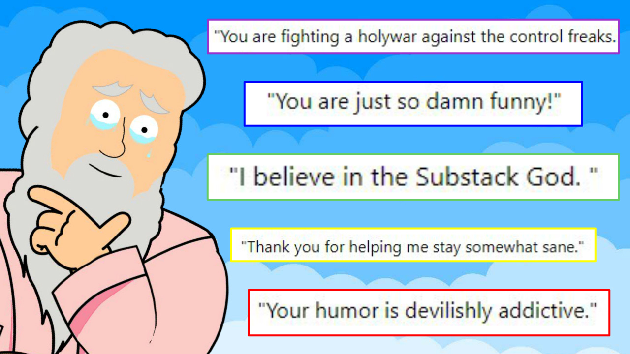 When someone becomes a paid subscriber, they have the option to send me a message. Because no troll will ever give me money, these messages are ALWAYS positive. So I always read them.
