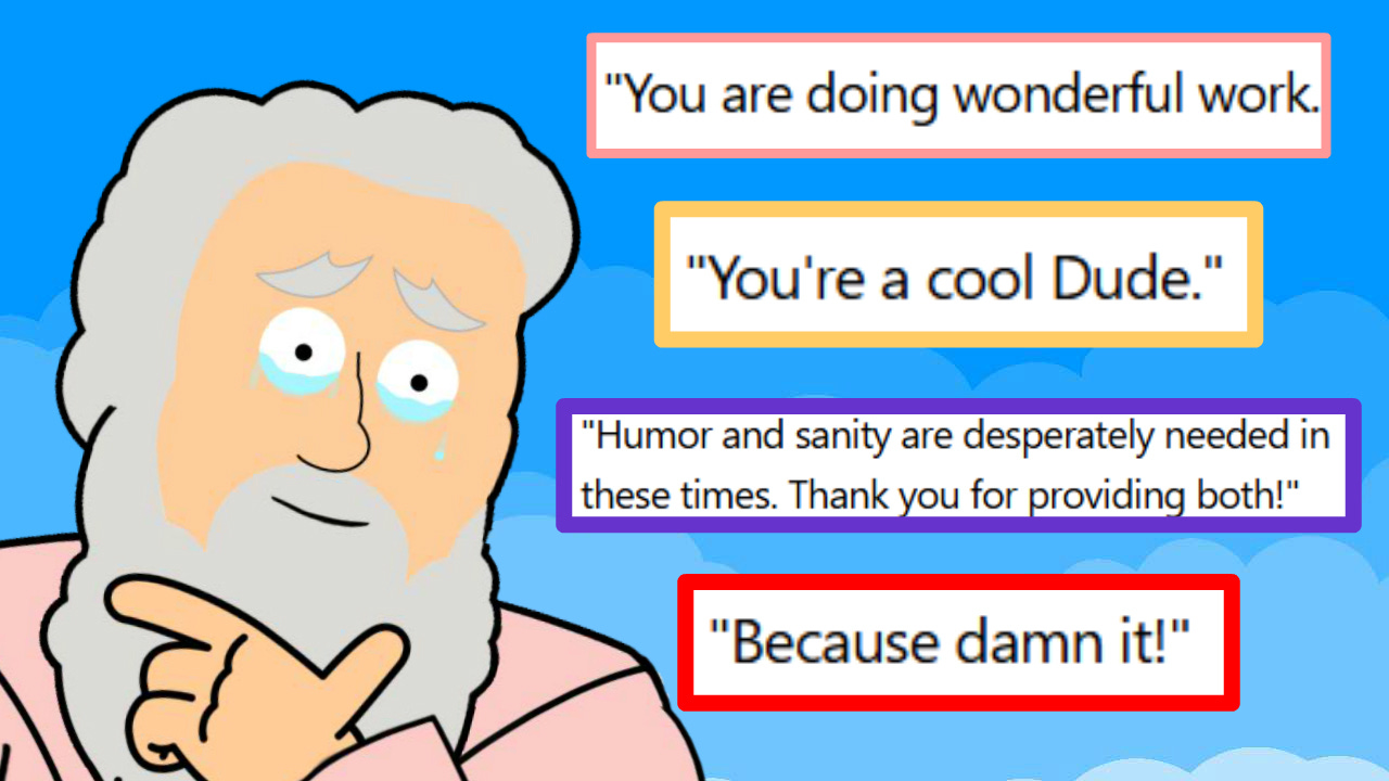 When someone becomes a paid subscriber of Letters from God, they have the option to send Me a message. And because no troll would ever pay Me, these messages are ALWAYS amazing. So I read every single one.